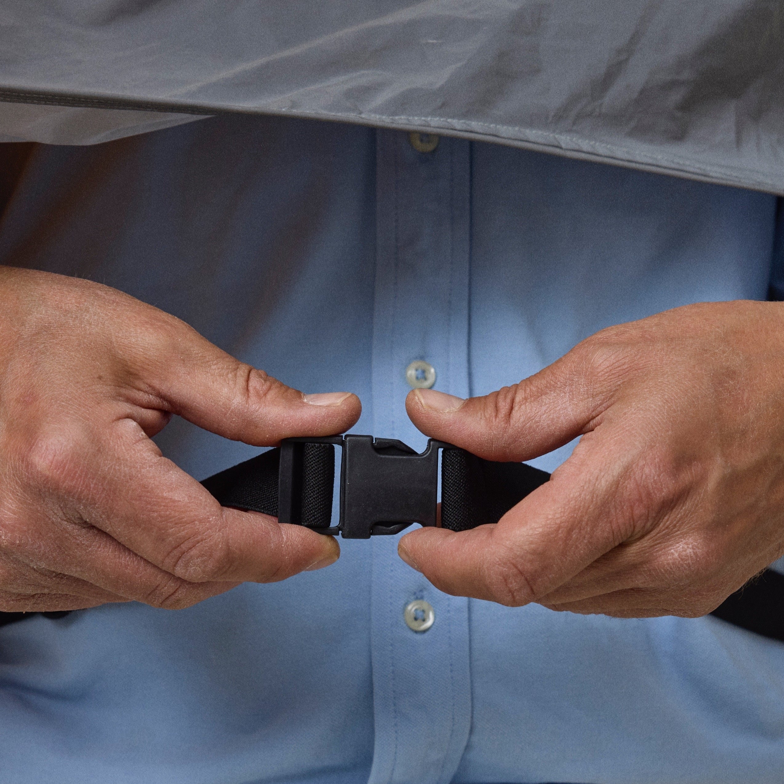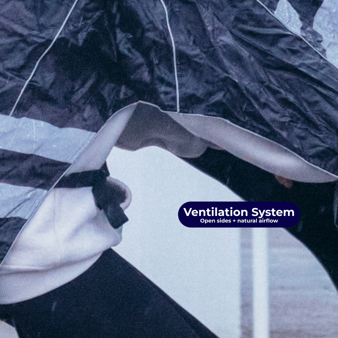 No. The built-in hand loops and adjustable waist belt keep the poncho close to your body, even on windy days or downhill. For extra stability, the poncho version also includes handlebar straps that secure the front for a calm, controlled ride.