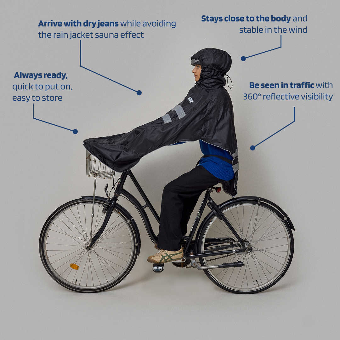 Absolutely. The side openings give you full freedom of movement, and the poncho’s cut lets you steer, look over your shoulder and signal safely, without fabric pulling or blocking your arm.