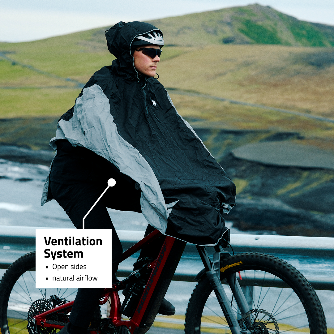 Absolutely. The side openings give you full freedom of movement, and the poncho’s cut lets you steer, look over your shoulder and signal safely, without fabric pulling or blocking your arm.