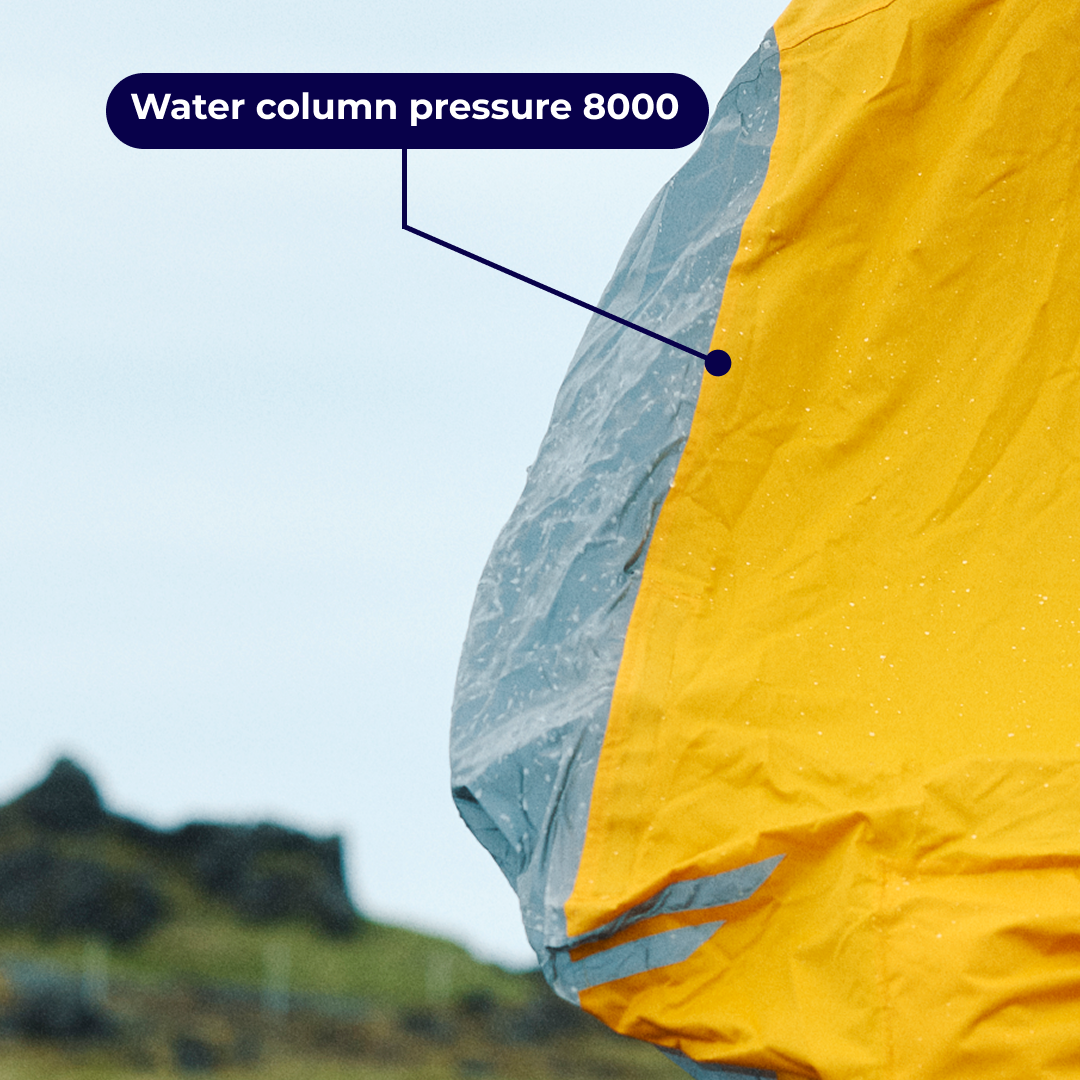 The poncho has welded seams and PU coating, strong enough for heavy and sustained rain. The long front panel keeps your thighs and lap dry while riding. (Your shoes may still get splash from the road, this is normal on any bike.)