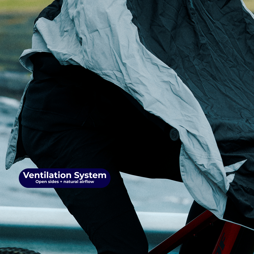 Traditional rain jackets trap heat. This poncho allows airflow while riding, preventing the “rain jacket sauna” effect that every commuter hates.